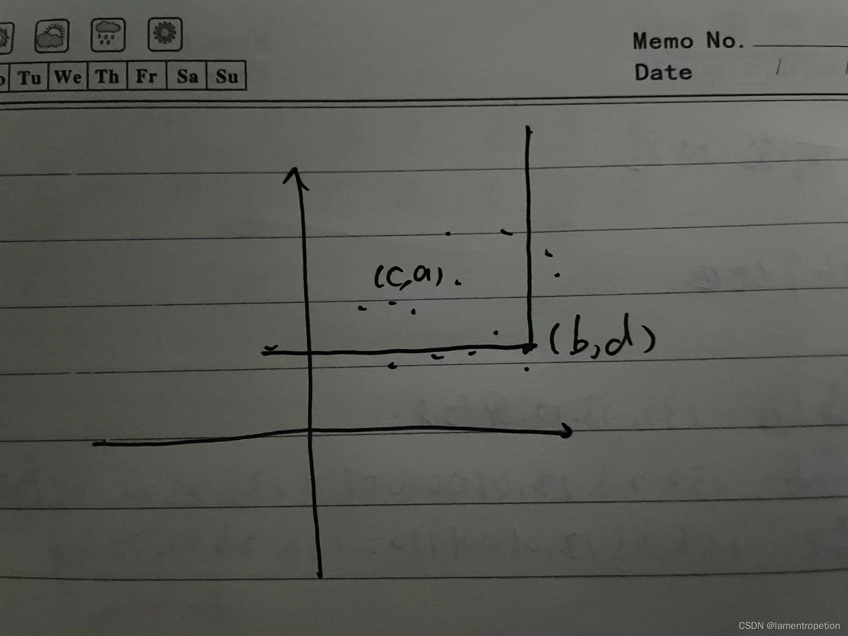但是,如果询问的顺序不是按x轴从小到大的,那么就不能维护,如果是,那么只需要在从左到右遍历的过程中就能维护了(DS思想)