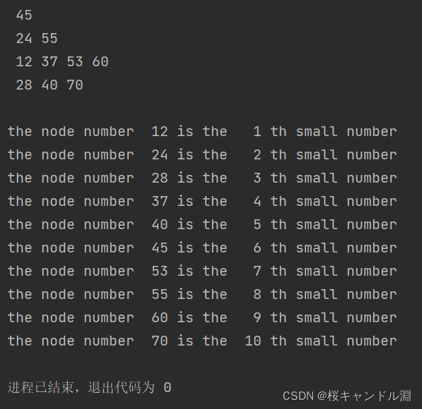 printf("the node number %3d is the %3d th small number \n", search_small(r1,i+1)->data,i+1);