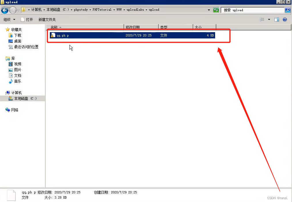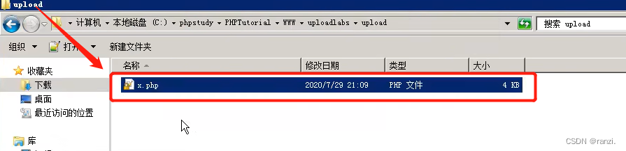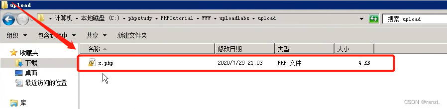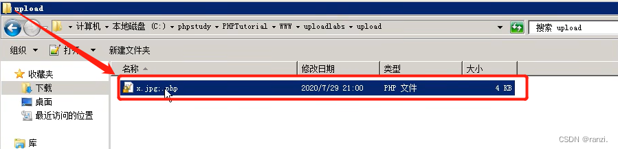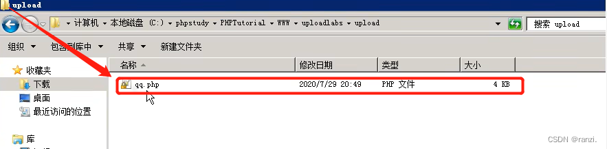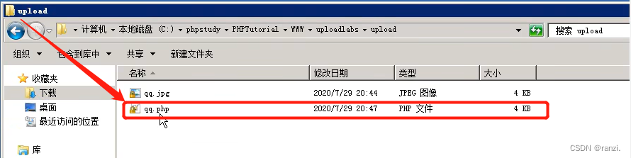 因此我们进行以下实验,将后缀名.php放到引号的外面,发现真的成功上传了,并且上传的文件可以当作php执行。