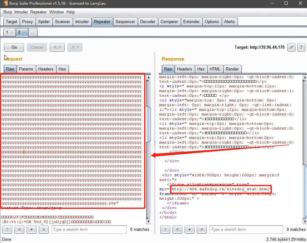 可以看到最开始时候安全狗依然还在拦截,但是当文件名达到一定长度后,发现放包之后久久没有抓到返回的数据包。