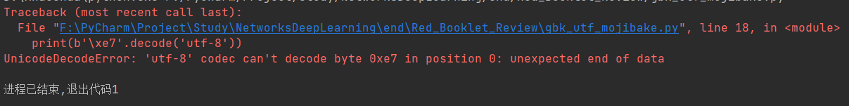 根据上面的错误信息分析了字节流中出现\xe7的特殊字符,怀疑是它无法被解码,用以下代码测试后。