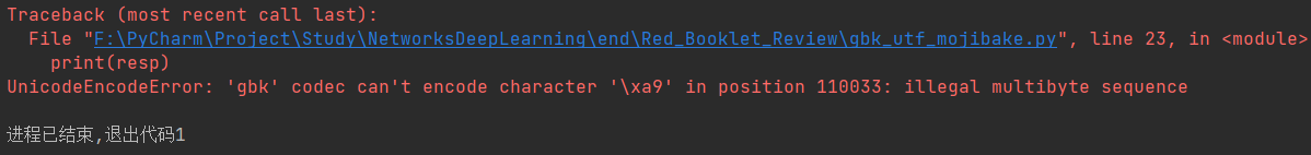 出现的问题:UnicodeEncodeError: 'gbk' codec can't encode character '\u1160' in position 9000: illegal multibyte sequence