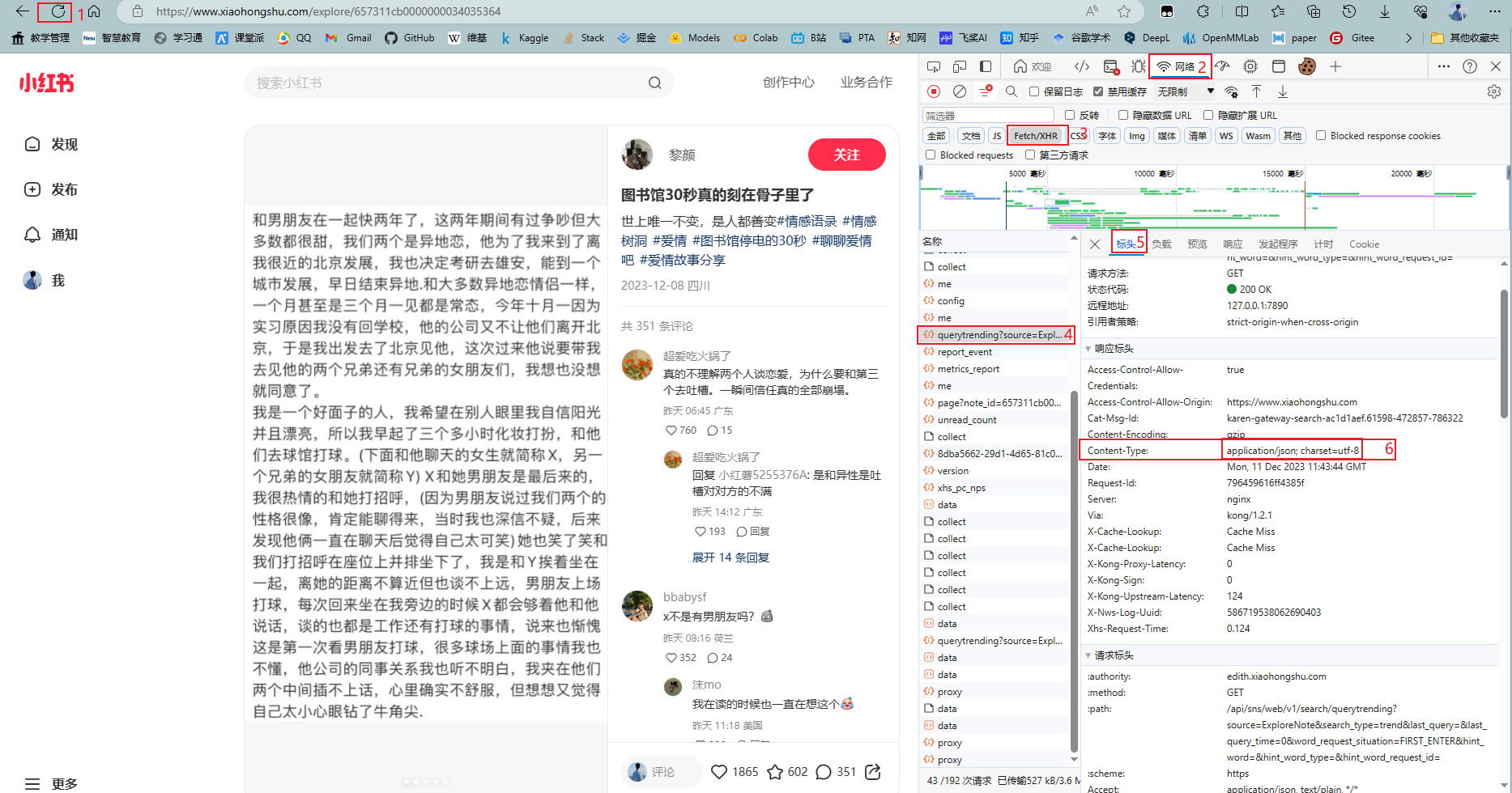 任意打开小红书任意网页,按F12进入浏览器的开发者模式,按下图依次点击