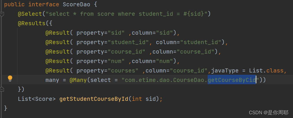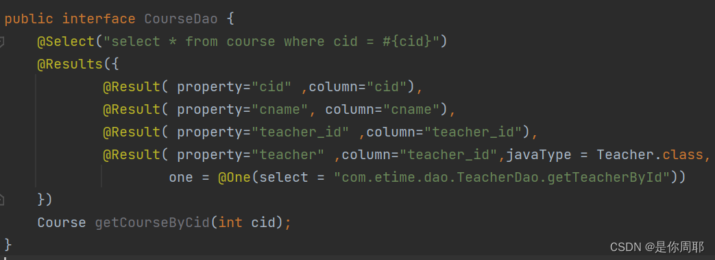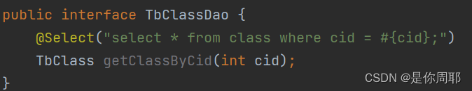 one = @One(select = "com.etime.dao.TbClassDao.getClassByCid"))