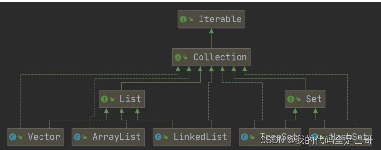 - Collection 接口没有直接的实现子类,是通过它的子类接口Set和List来实现的