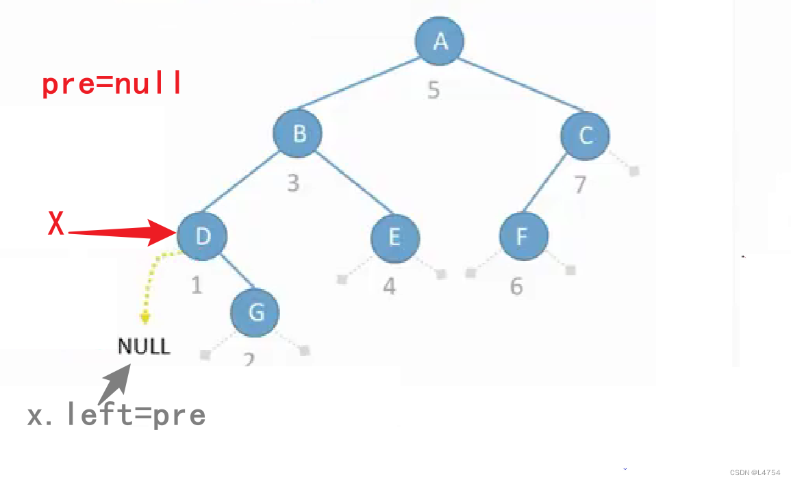 线索二叉树 当我们从根节点开始遍历时,首先访问根节点,然后访问其子节点,接着访问孙子节点,以此类推。在每一层遍历时,我们需要确保按照从左到右的顺序访问节点。这样,队列中的节点就按照层次的顺序排列,而且在处理当前层节点时,下一层的节点已经按照顺序进入了队列,等待被处理。走中序遍历,第一个访问的结点时D,D的left为null,可以进行线索化,使其指向pre,初始pre=null,故left为空。因此,队列的先进先出(FIFO)特性非常适合层次遍历的需求,使得我们能够以按层级顺序逐个访问节点,从而实现二叉树的层次遍历。