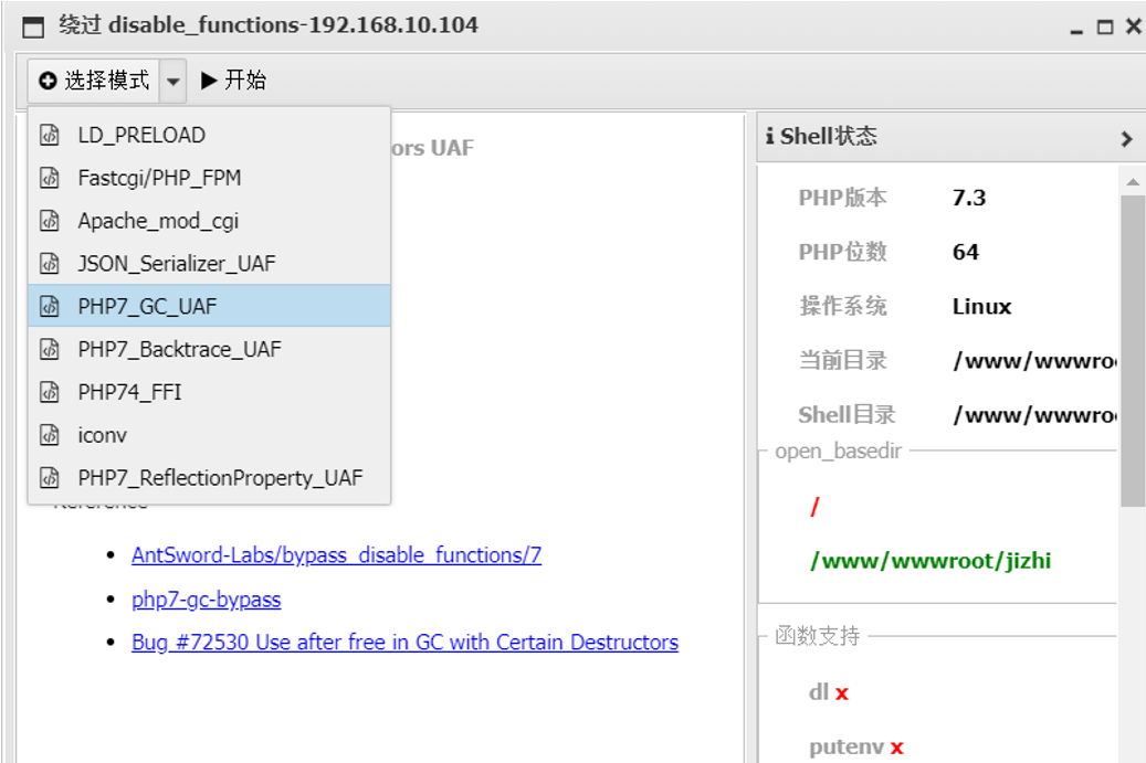 发现执行不了命令 使用蚁剑的插件进行绕过执行