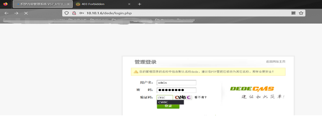 12.收集信息发现后台登陆页面 弱口令测试admin admin登录