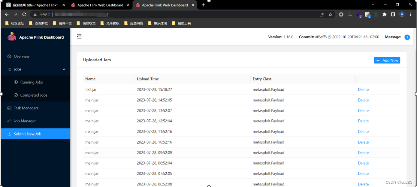 近日,有安全研究员公开了一个Apache Flink的任意Jar包上传导致远程代码执行的漏洞.