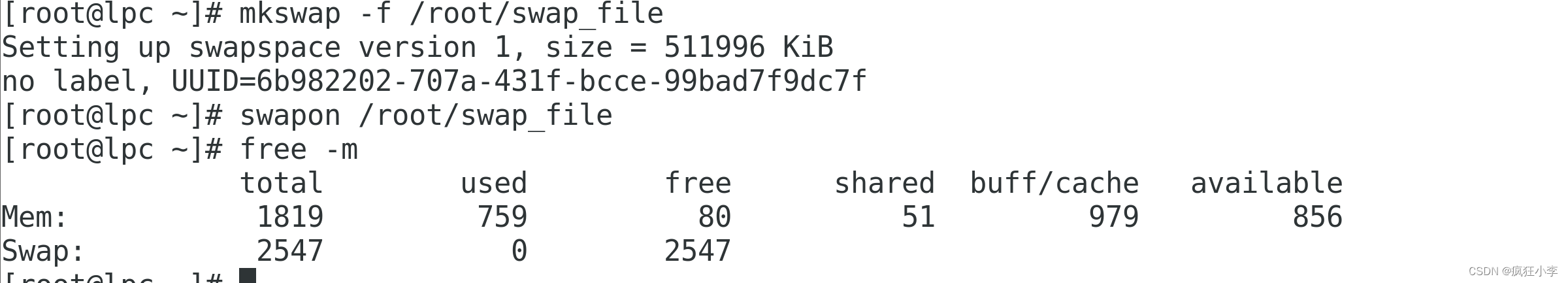 swap扩展只需要了解就好,如果swap分区都不够用了,还是直接换硬盘吧