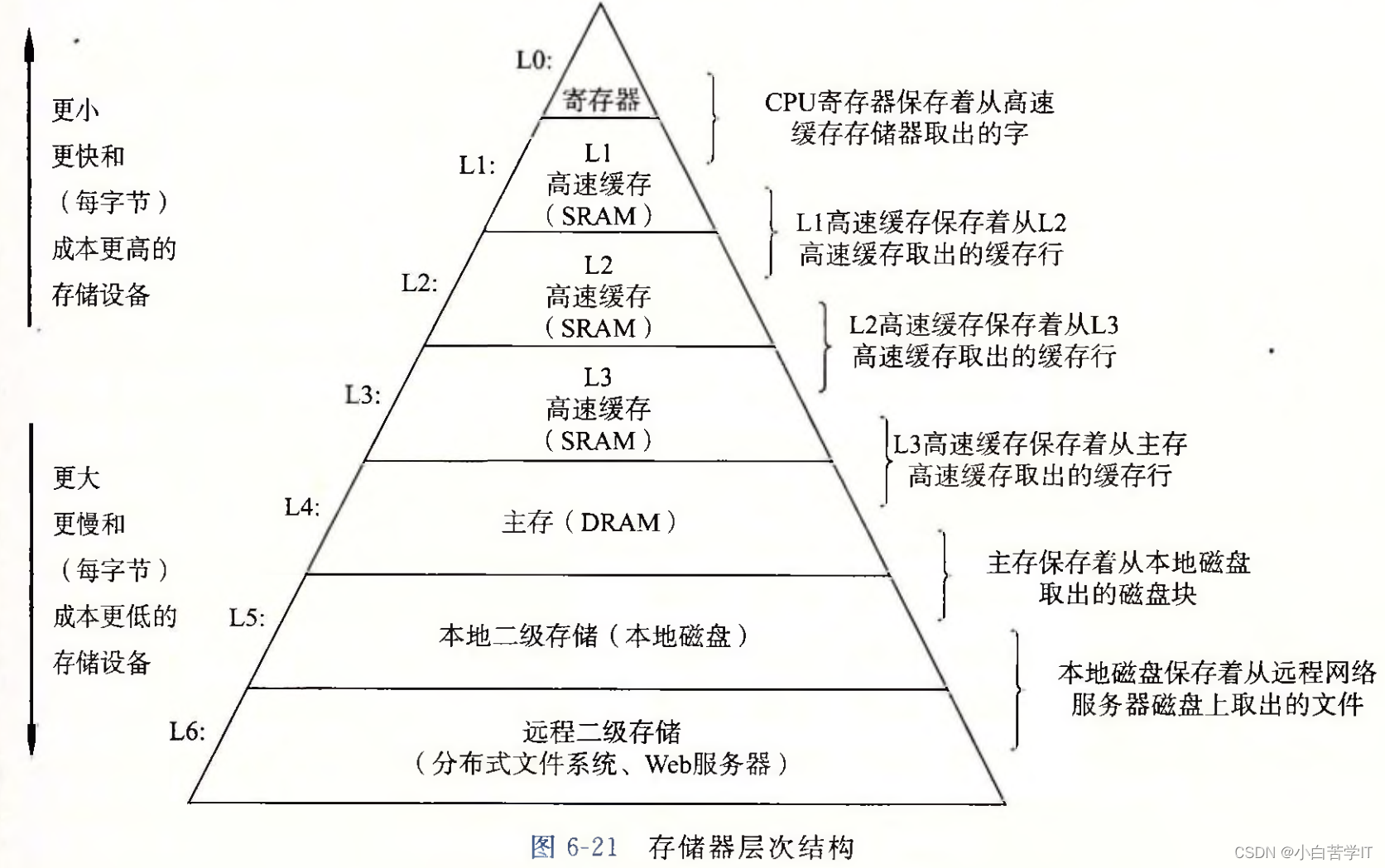 以CPU为中心,距离CPU越近,存储效率越高,造价越贵。