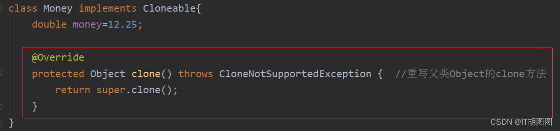 我们要实现克隆,首先要在类中重写Object的clone方法: