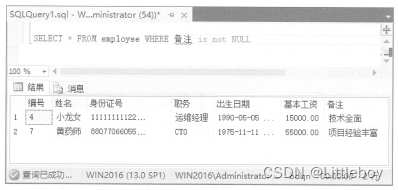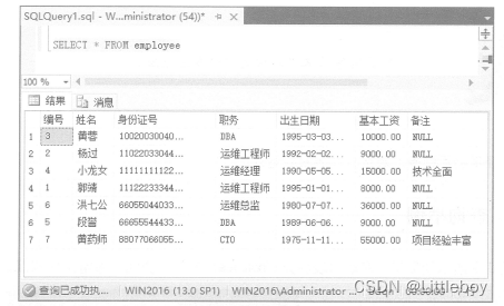 例:将employee表中所有员工的姓名、身份证号和职务生成一个新表new01中