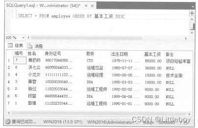例:查询employee表中所有员工信息,按照基本工资从高到低显示查询结果