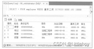 2.查询employee表中基本工资为8000~10000的员工所有信息