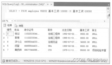 SELECT * FROM employee WHERE 基本工资<10000 or 基本工资>20000