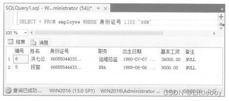 SELECT * FROM employee WHERE 身份证号 LIKE '66%'