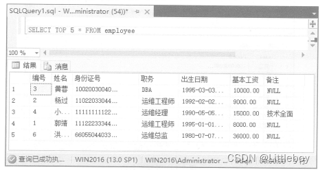 根据此表运用T-SQL中的SELECT语法进行查询数据