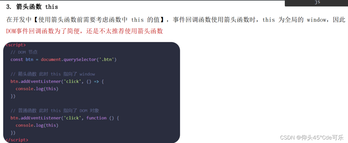箭头函数不会创建自己的this,它只会从自己的作用域链的上一层沿用this。