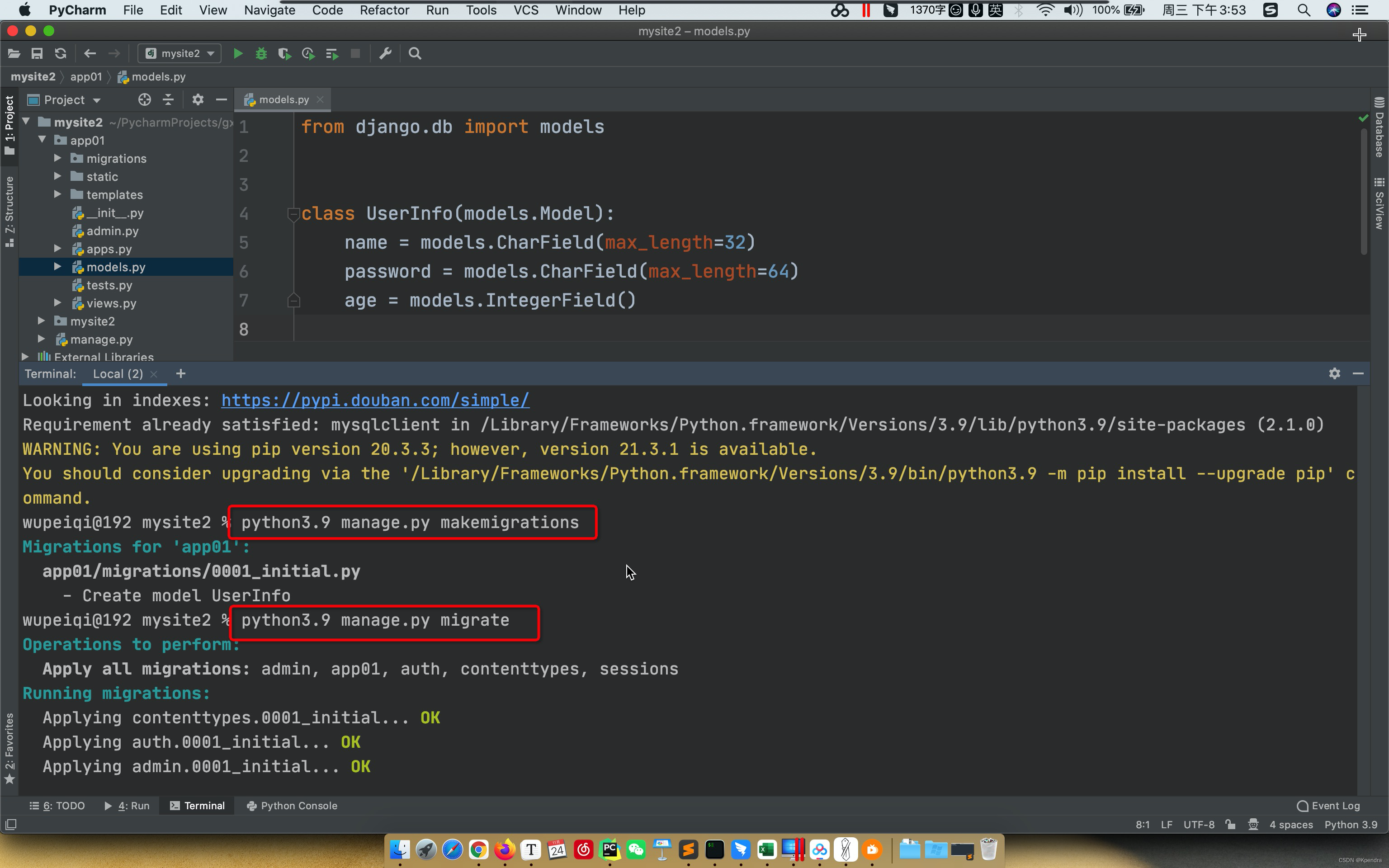 python的django框架实现数据库链接与数据库基本操作 外链图片转存失败,源站可能有防盗链机制,建议将图片保存下来直接上传(img-FOLnNWMa-1685532991418)(assets/image-20211124103828667.png)][外链图片转存失败,源站可能有防盗链机制,建议将图片保存下来直接上传(img-BjnaUidP-1685532991418)(assets/image-20211124103947169.png)]