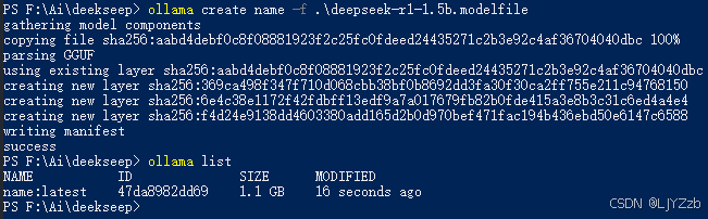 ollama create name -f .\deepseek-r1-1.5b.modelfile