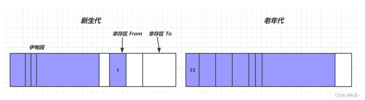可达分析算法:可达分析法需要确定根对象,根对象即那些肯定不能当作垃圾被回收的对象,垃圾回收时,会扫描堆中的所有对象,若对象被根对象直接或间接引用,就不能被回收,反之,则可以被回收(即能否沿着 GC Root对象为起点的引用链找到该对象,找不到,表示可以回收 )。**软引用(SoftReference):**仅有软引用引用该对象时,在垃圾回收后,内存仍不足时会再次出发垃圾回收,回收软引用对象;**强引用:**只有所有 GC Roots 对象都不通过【强引用】引用该对象,该对象才能被垃圾回收。