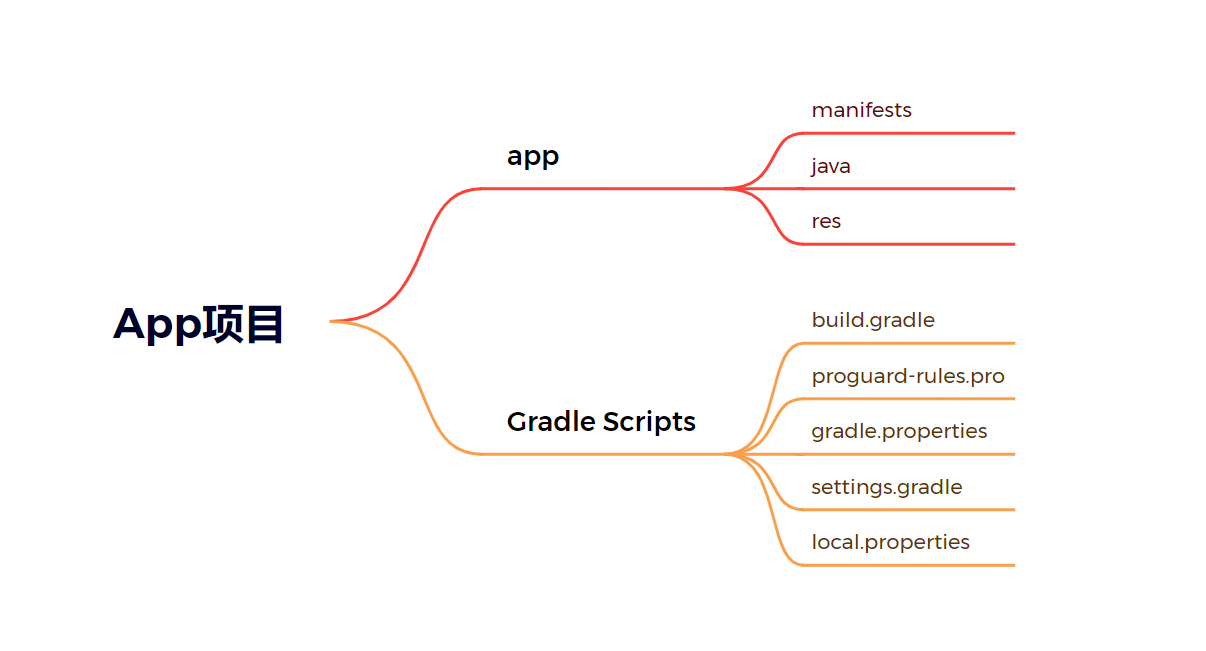 App项目下面有两个分类:app(代表app模块)、Gradle Scripts。