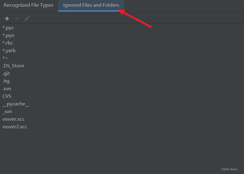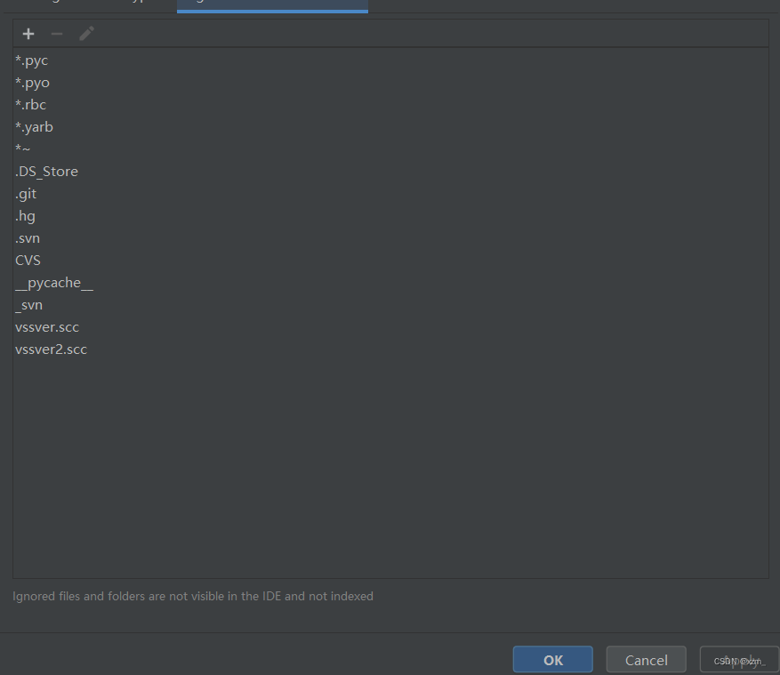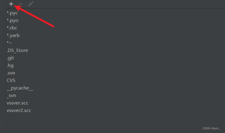 4.点击+号输入自己所需隐藏的文件名称即可(例如想要隐藏后缀名为iml的文件只需添加*.iml)