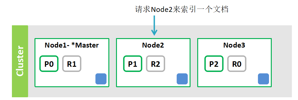 3、node1索引文档,同步给副本(R0)节点node3索引文档。
