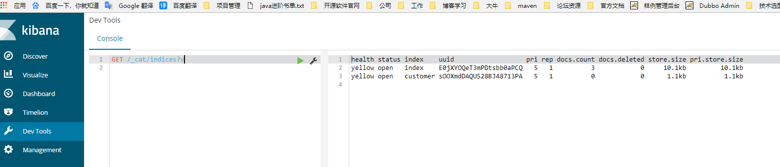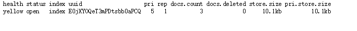 Yellow - all data is available but some replicas are not yet allocated (cluster is fully functional),即数据和集群可用,但是集群的备份有的是坏的