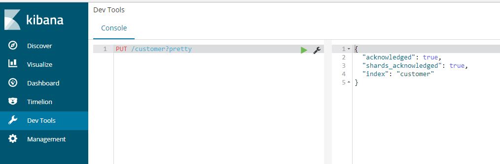 创建一个名为 customer 的索引。pretty要求返回一个漂亮的json 结果