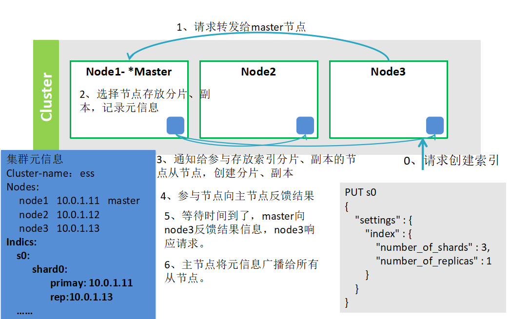 1、node2计算文档的路由值得到文档存放的分片(假定路由选定的是分片0)。