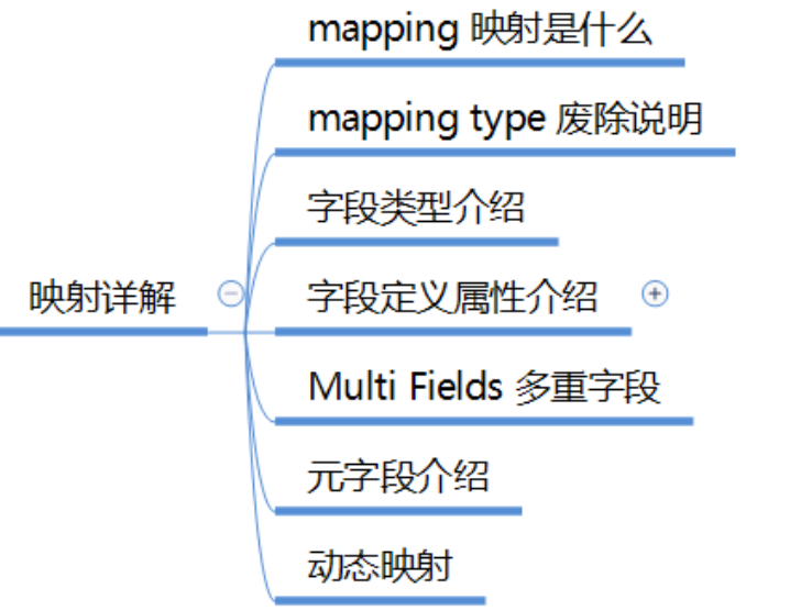注意:在ES中创建一个mapping映射类似于在数据库中定义表结构,即表里面有哪些字段、字段是什么类型、字段的默认值等;也类似于solr里面的模式schema的定义