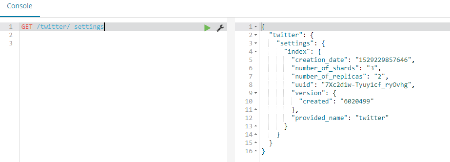 创建一个名为twitter的索引,设置索引的分片数为3,备份数为2。注意:在ES中创建一个索引类似于在数据库中建立一个数据库(ES6.0之后类似于创建一个表)