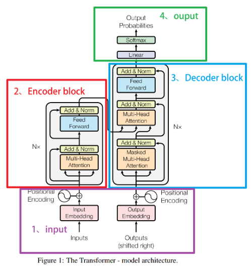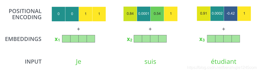 也就是把用于表示各个词在文本里顺序的向量和上一步嵌入层得到的词向量做向量相加,最终把结果传给编码器。这样以来,模型既可以理解每个词的意义,又能捕捉词在句中的意思,从而理解不同词之间的顺序关系,最终得到语法、语义、位置信息的向量。