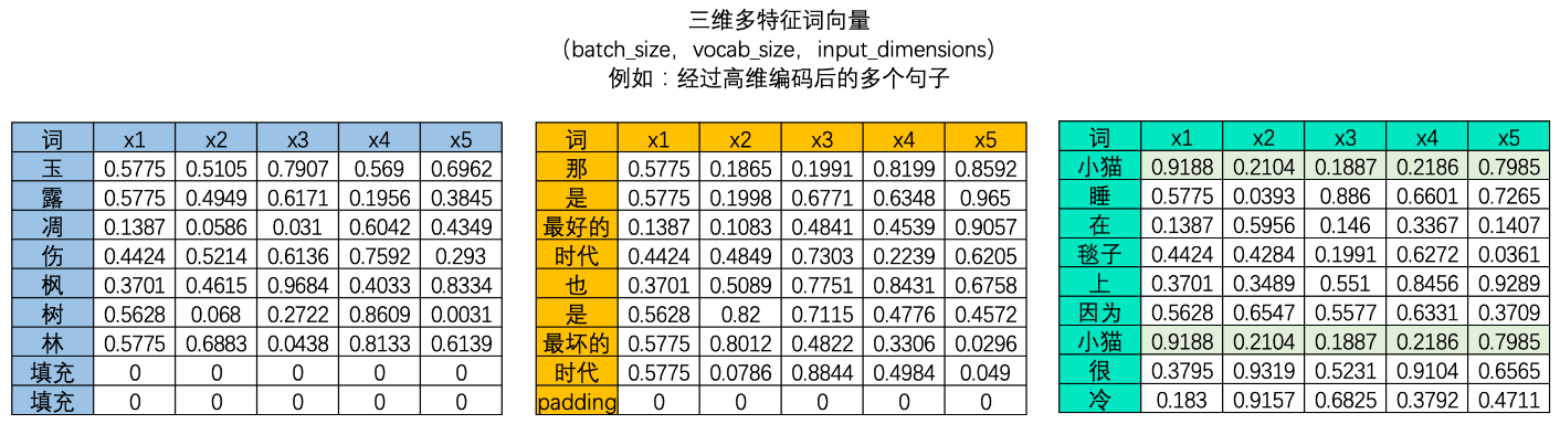 在NLP的世界中,序列数据中的每个样本都会被编码成一个向量,其中文字数据被编码后的结果被称为词向量,时间序列数据则被编码为时序向量。