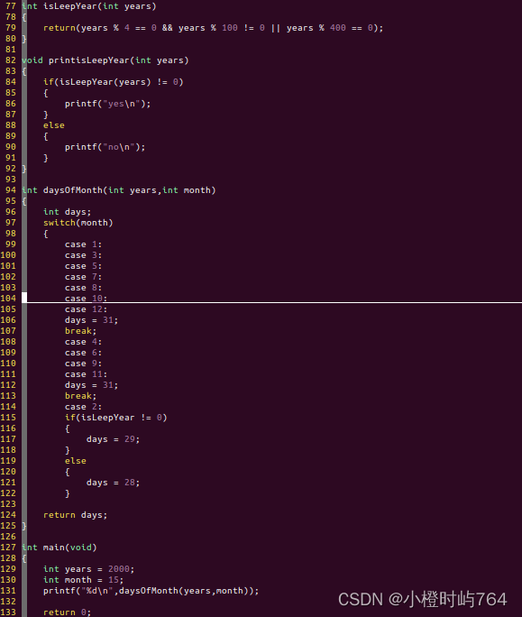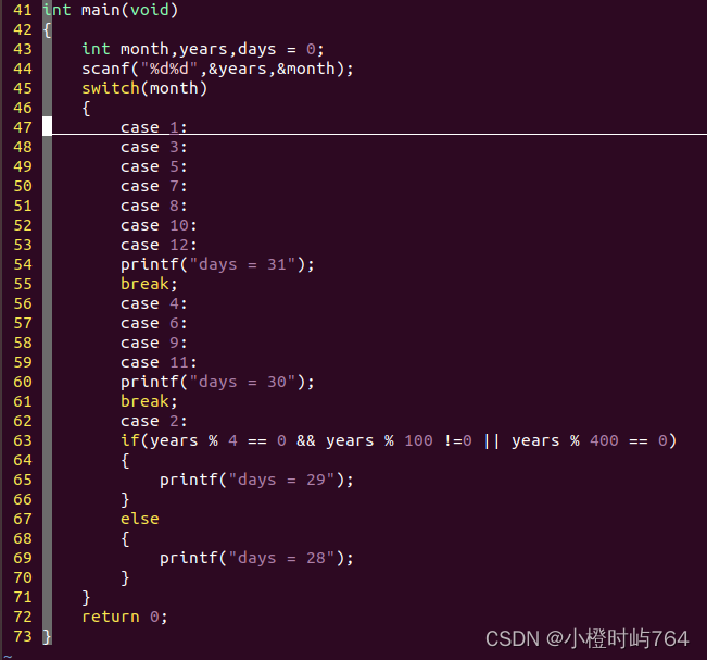 2、用switch语句计算每月的天数