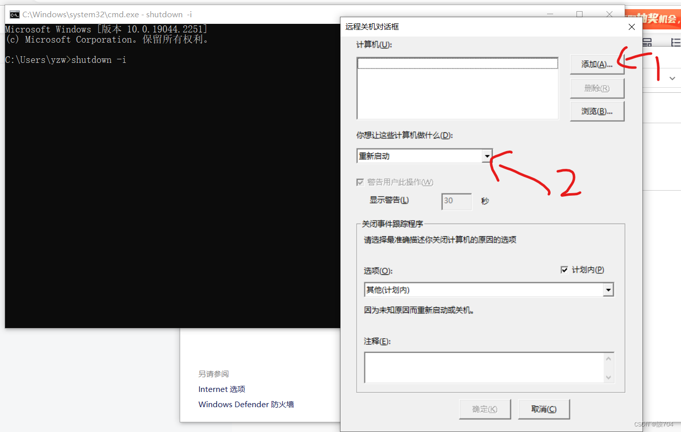 win+R 输入cmd打开命令提示符----输入shutdown -i回车