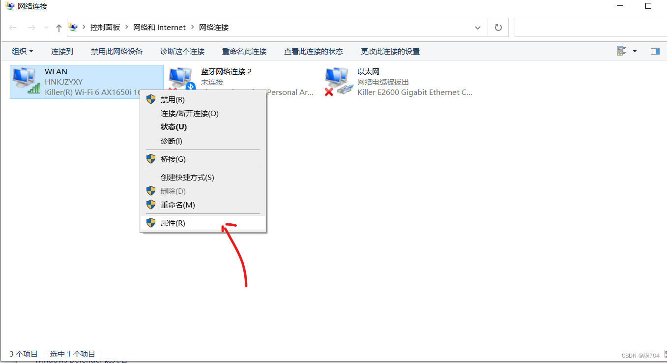 右击WLAN选择属性