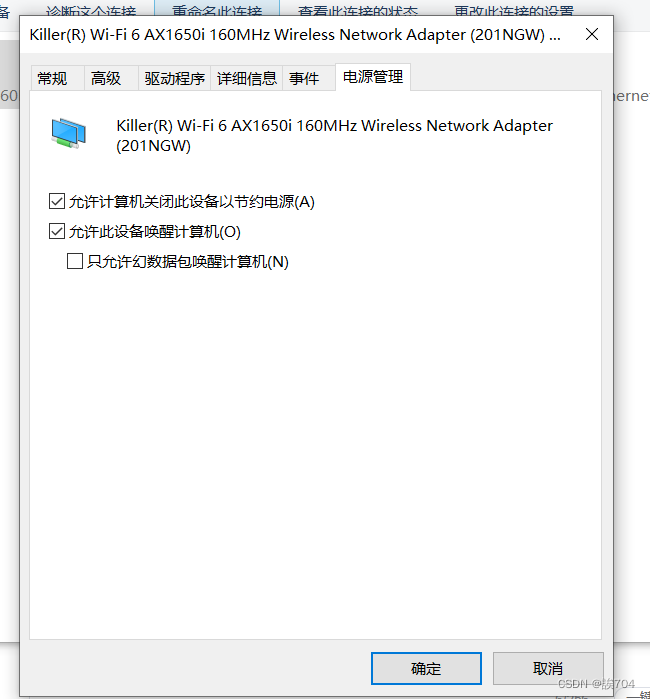 点击配置之后打开一个对话框---选择电源管理选项---然后勾选允许此设备唤醒计算机--点击确定