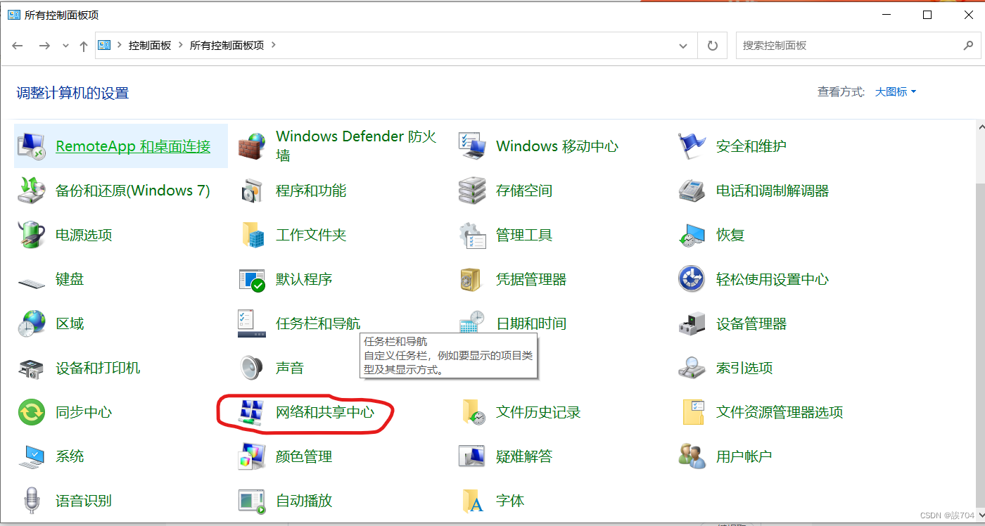 点击网络和共享中心