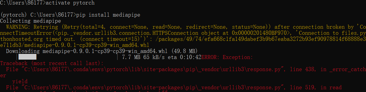 (深度学习)解决在命令提示符(CMD)或Anaconda中下载相关库或包时的报错问题:WARNING: Retrying (Retry(total=4, connect=None。。。 解决在命令提示符(CMD)或Anaconda中下载相关库或包时的报错问题:WARNING: Retrying (Retry(total=4。。。