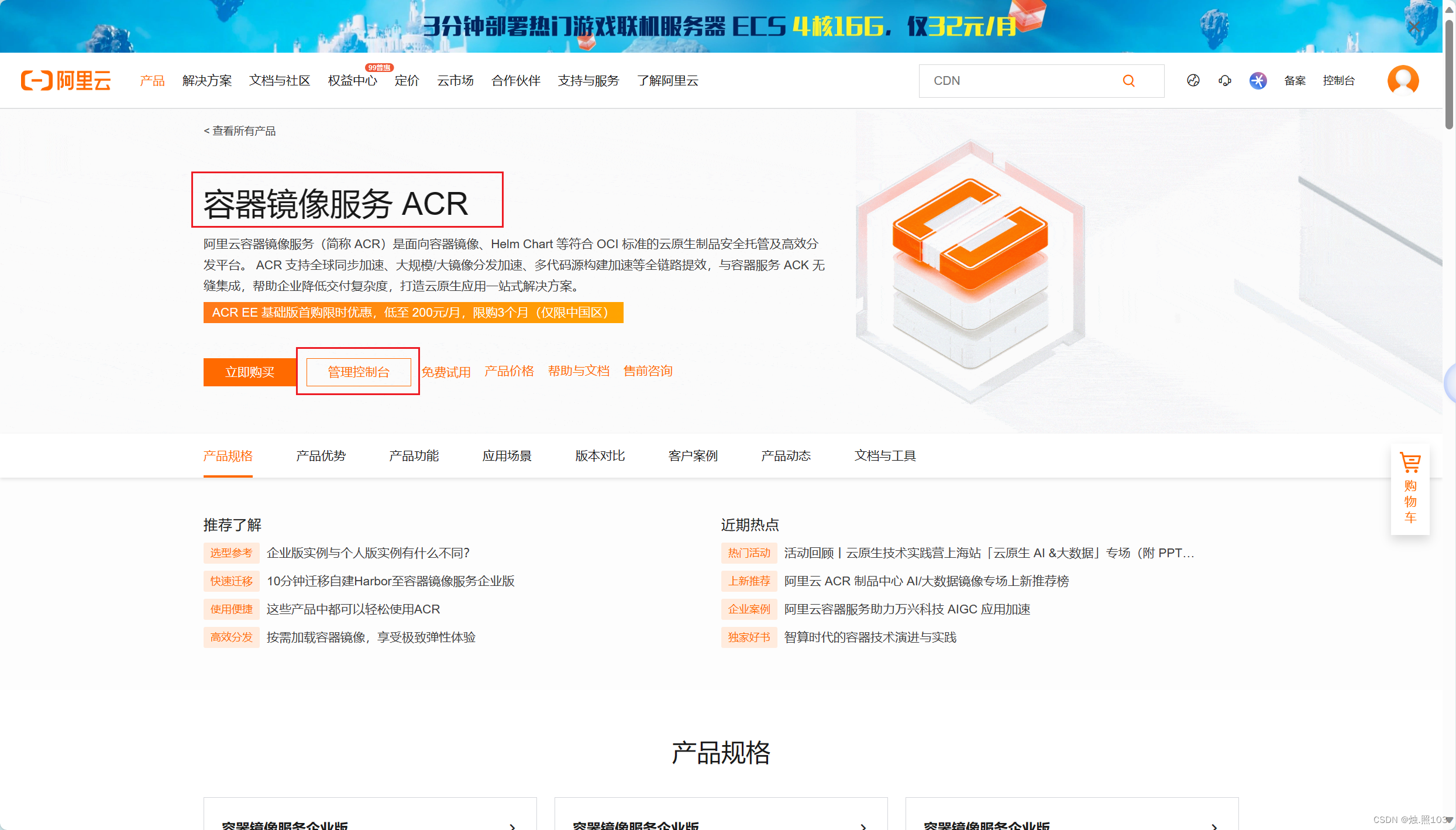 点击管理控制台: