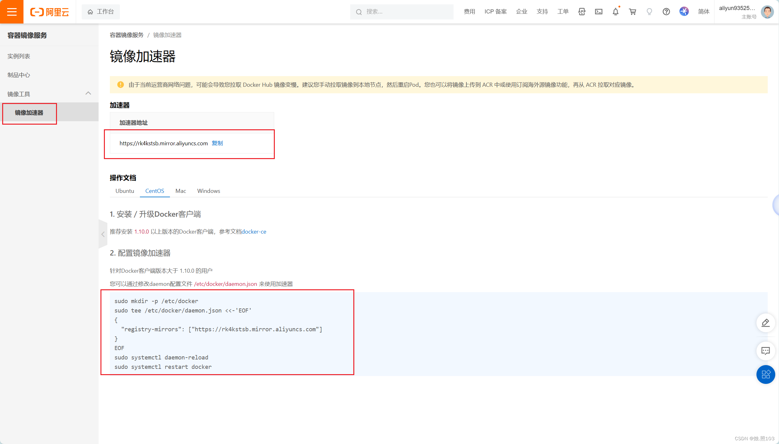 配置镜像加速地址: