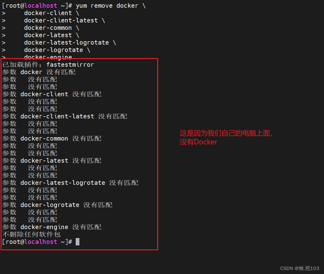 [root@localhost ~]# yum remove docker \