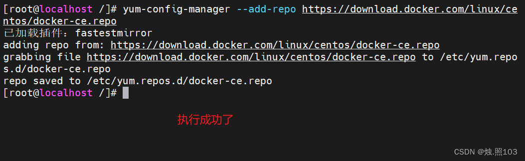 [root@localhost /]# yum-config-manager --add-repo https://download.docker.com/linux/centos/docker-ce.repo