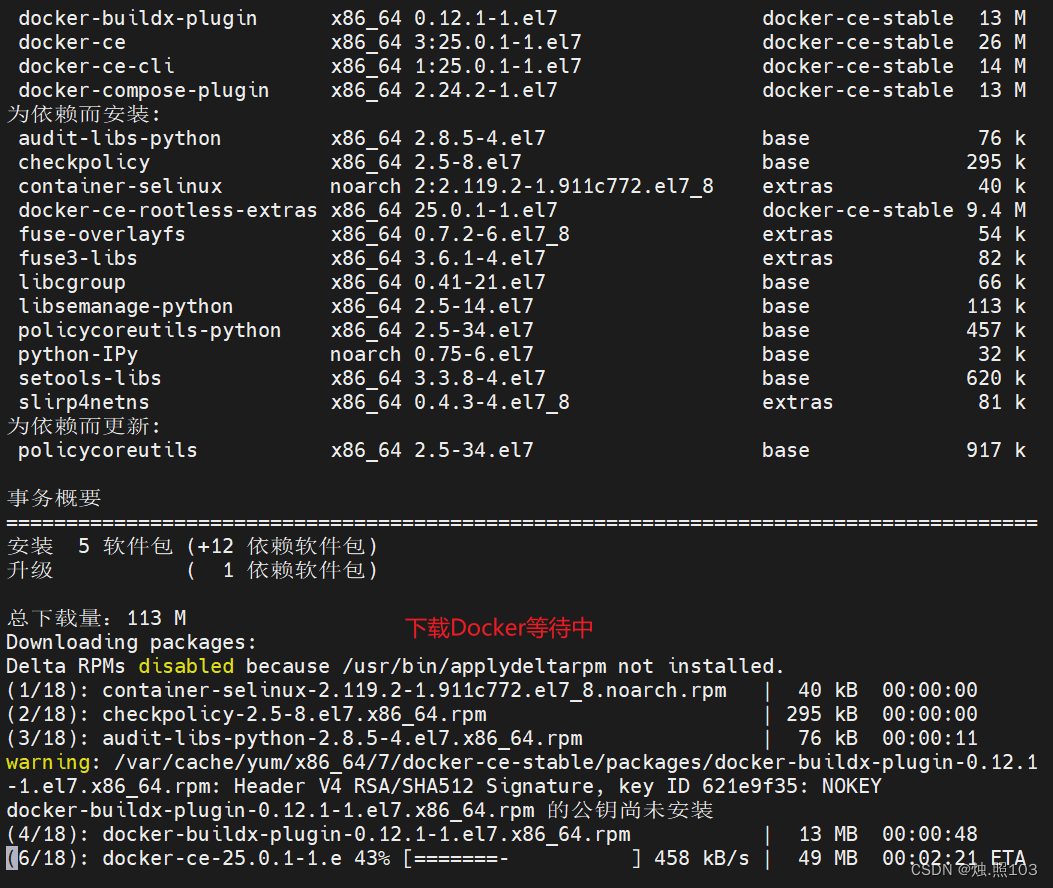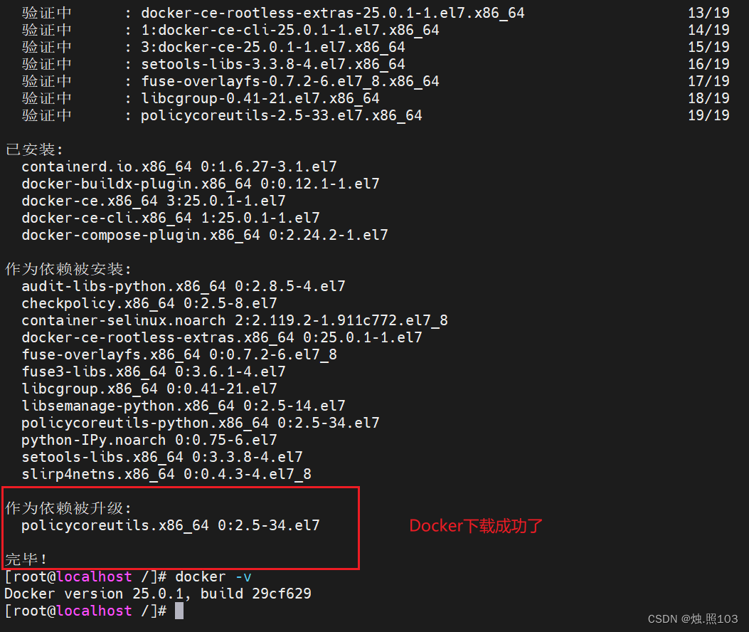完成好上面的步骤之后,执行命令,安装Docker