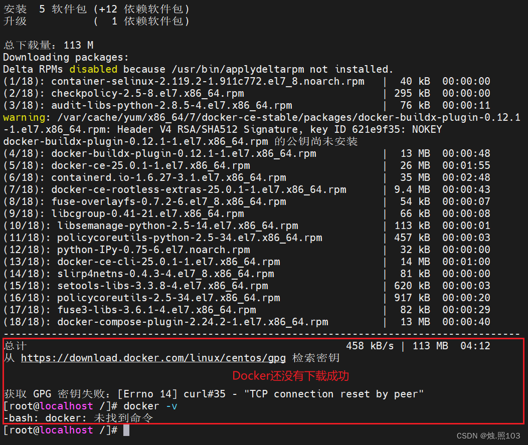如果要是出现下载失败的情况,我们可以多尝试几次,这个下载Docker的命令。